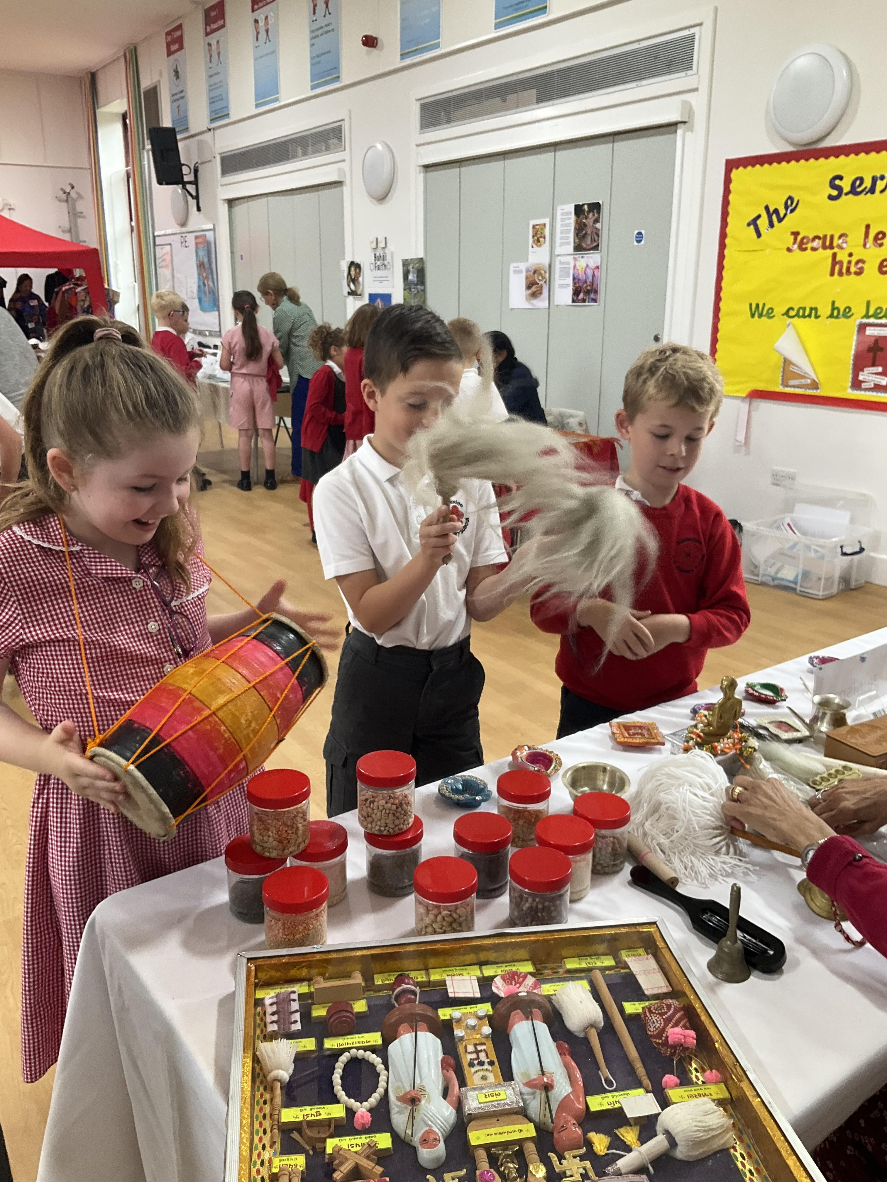 Children enjoyed meeting visiting speakers from St Phillips Centre in Leicester, learning about their beliefs and religion. They took part in dressing up, dancing and understanding food that can and cannot be consumed too.