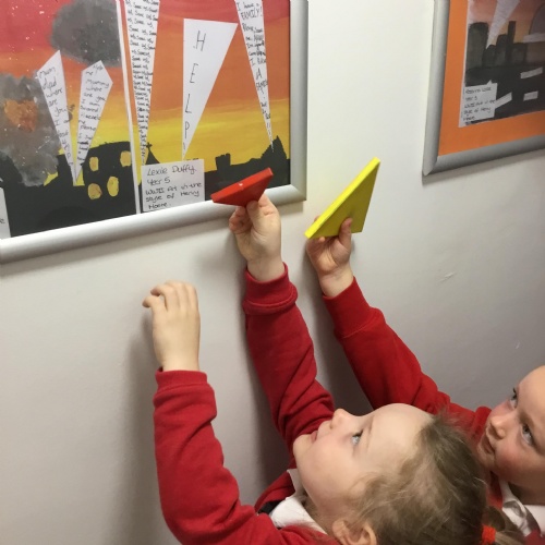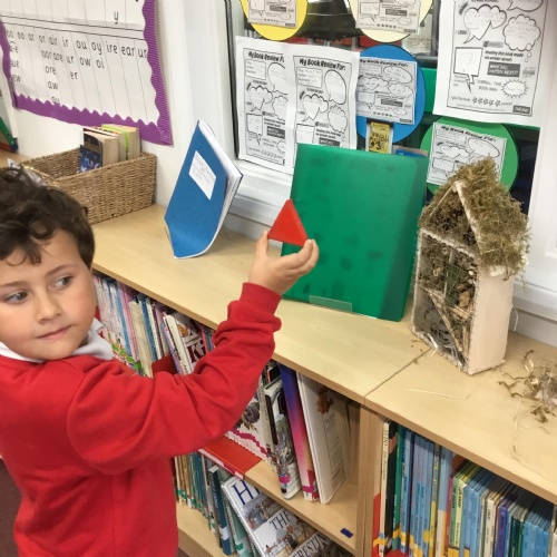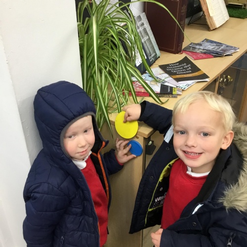 This week in our Maths we have been talking about the shapes circles and triangles. We went shape hunting around our school and talked about the properties of the shapes using mathematical language.
