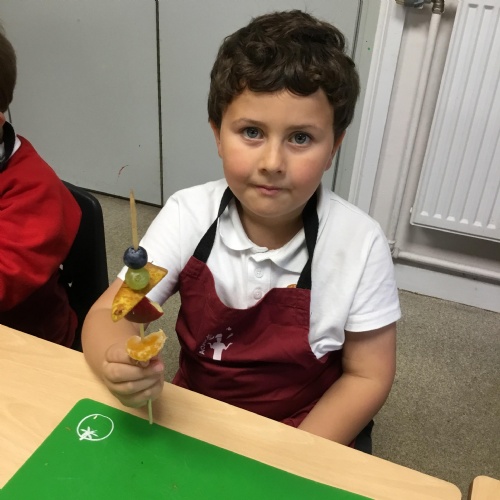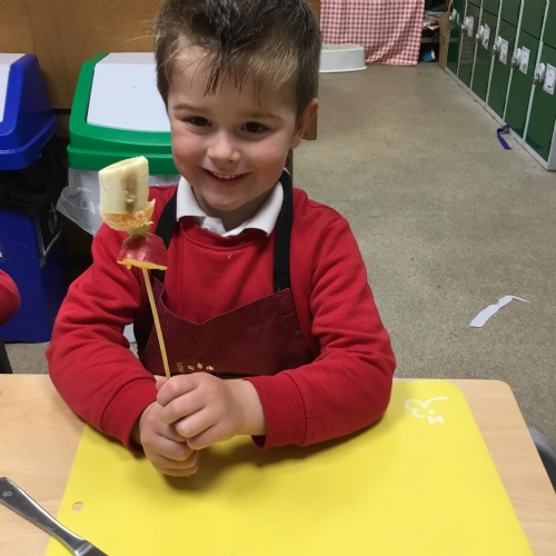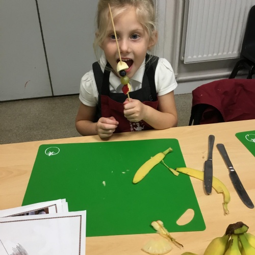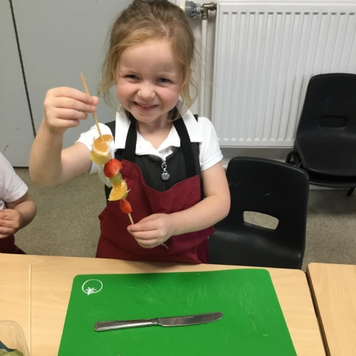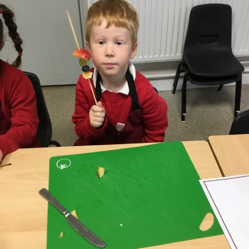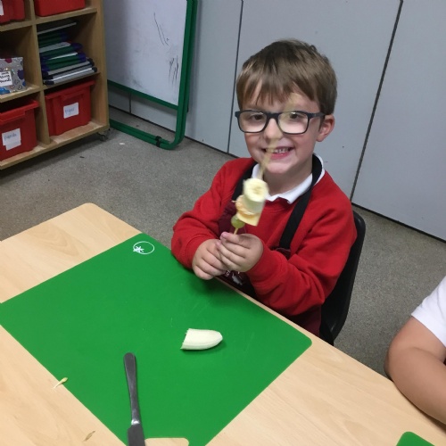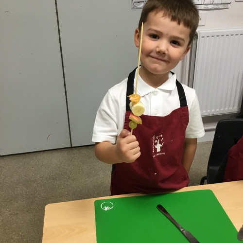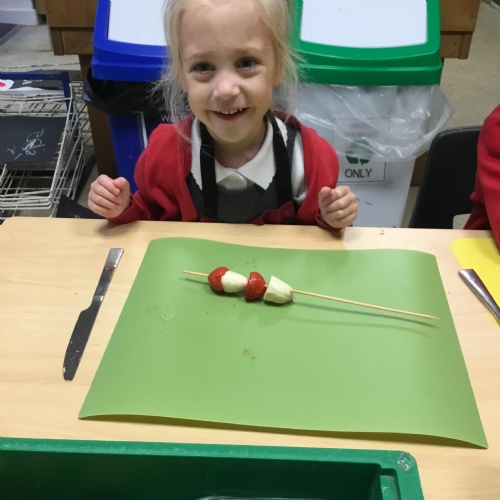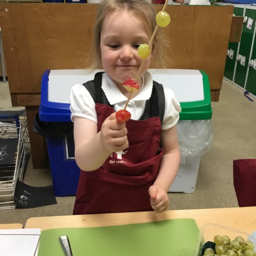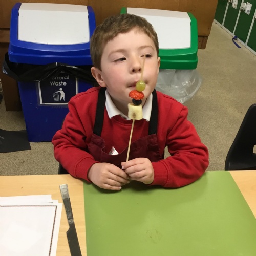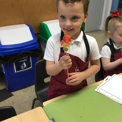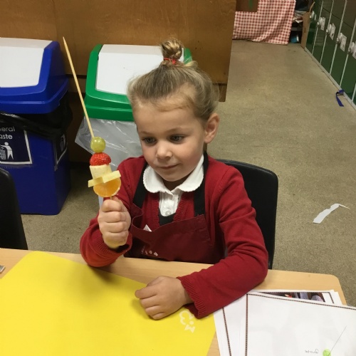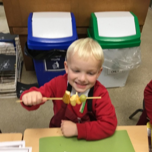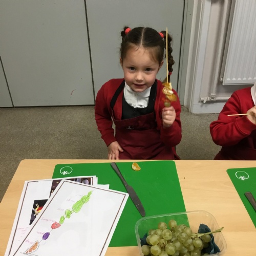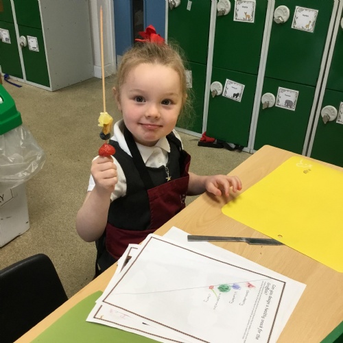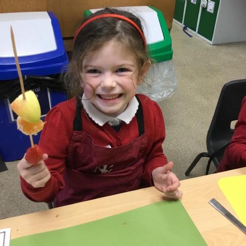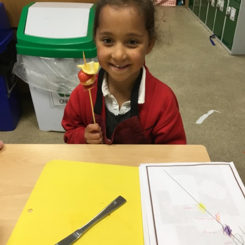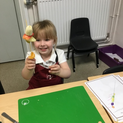 This term we have been thinking of ways that we could keep the Gruffalo healthy. We have discussed the importance of sleep, exercise, keeping our teeth healthy and primarily eating a balanced diet. We concluded our project by making the Gruffalo a fruit kebab. We designed our kebab and then prepared and chopped the fruits ourselves to make our fruit kebab sticks. They were very tasty!��