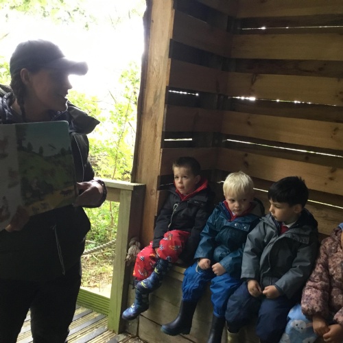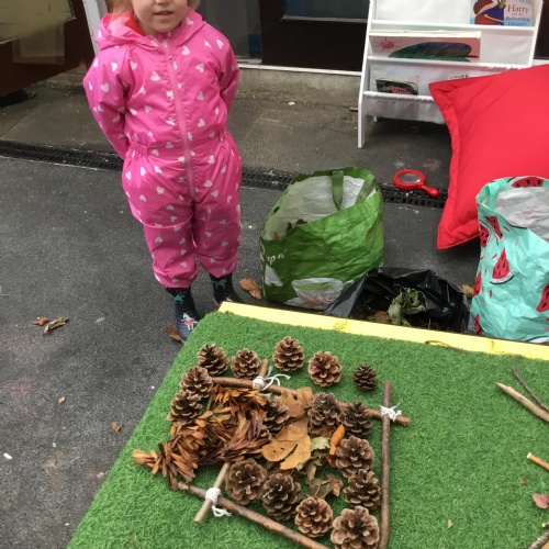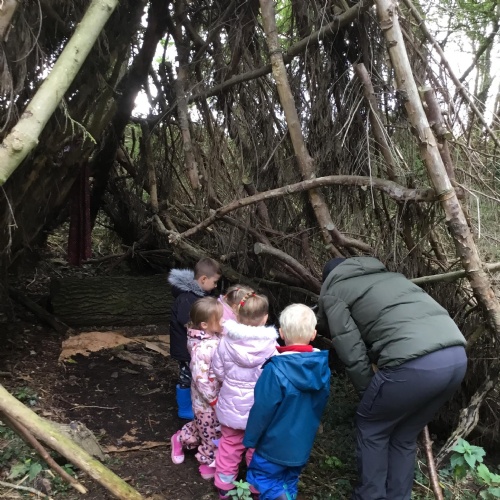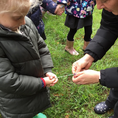 We thoroughly enjoyed our trip to Wyville woods. Mrs.Pacey told us all about Sneezy the dragon who lived in the woods but she couldn’t find him as he was feeling very sad. Sneezy had a cold and when he sneezed he had blown down all of the fairy houses. He was very sad that he had blown down the houses of his friends. So that Sneezy knew we were his friends, we made a special friendship bracelets before entering the woods. We explored around and saw some really magical things including the fairy’s play park and what we think was Sneezy’s den. We collected some natural resources for our art project and enjoyed a lovely story before returning to school on the bus.