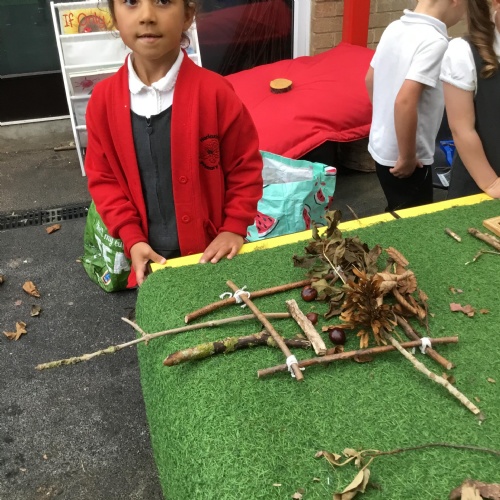 We have explored natural art using some of the resources that we collected from our school trip. We are inspired by Andy Goldsworthy to make our very own natural art.