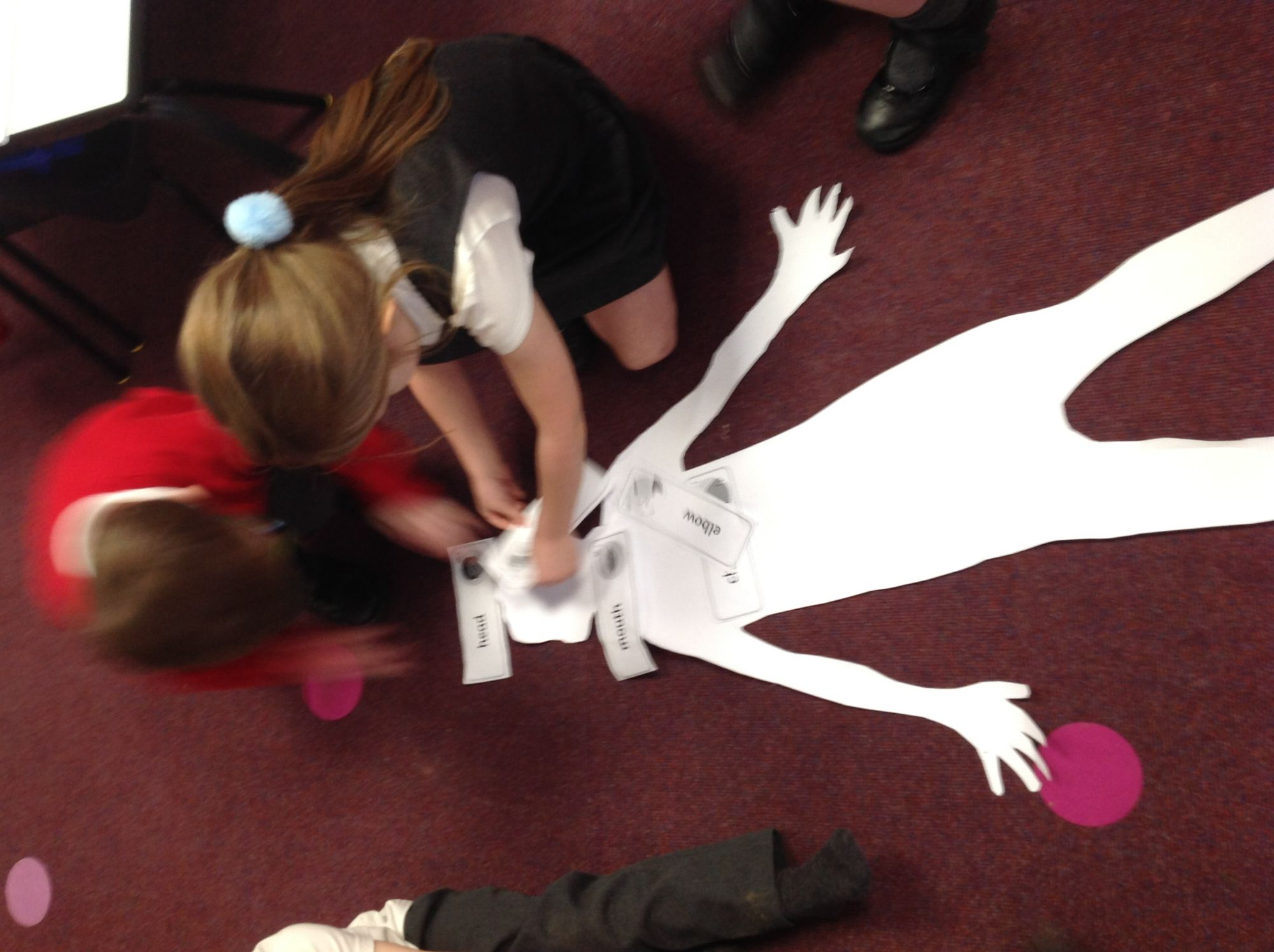 We had a super fun Science lesson learning about the different parts of the body and our senses. We drew around two children in our class and labelled the parts of the body. We worked really well as a team, carefully drawing, cutting around the body shapes, and working together to add the labels. We were great scientists and fantastic team workers!